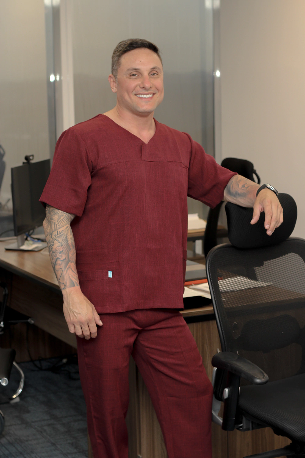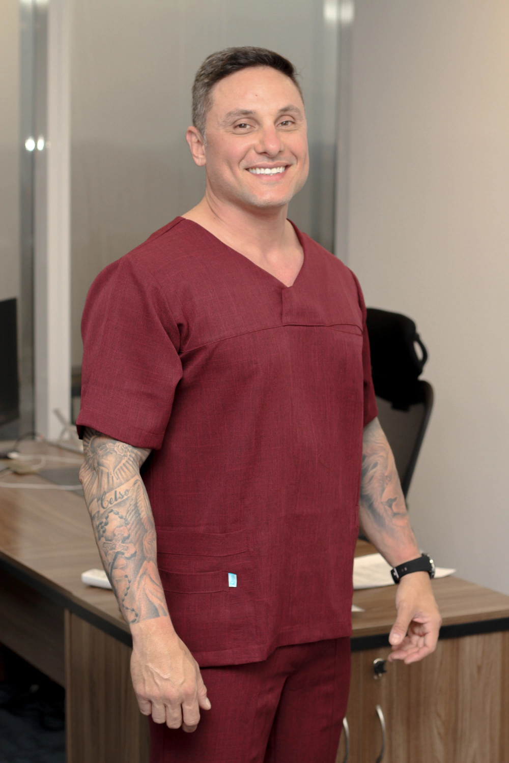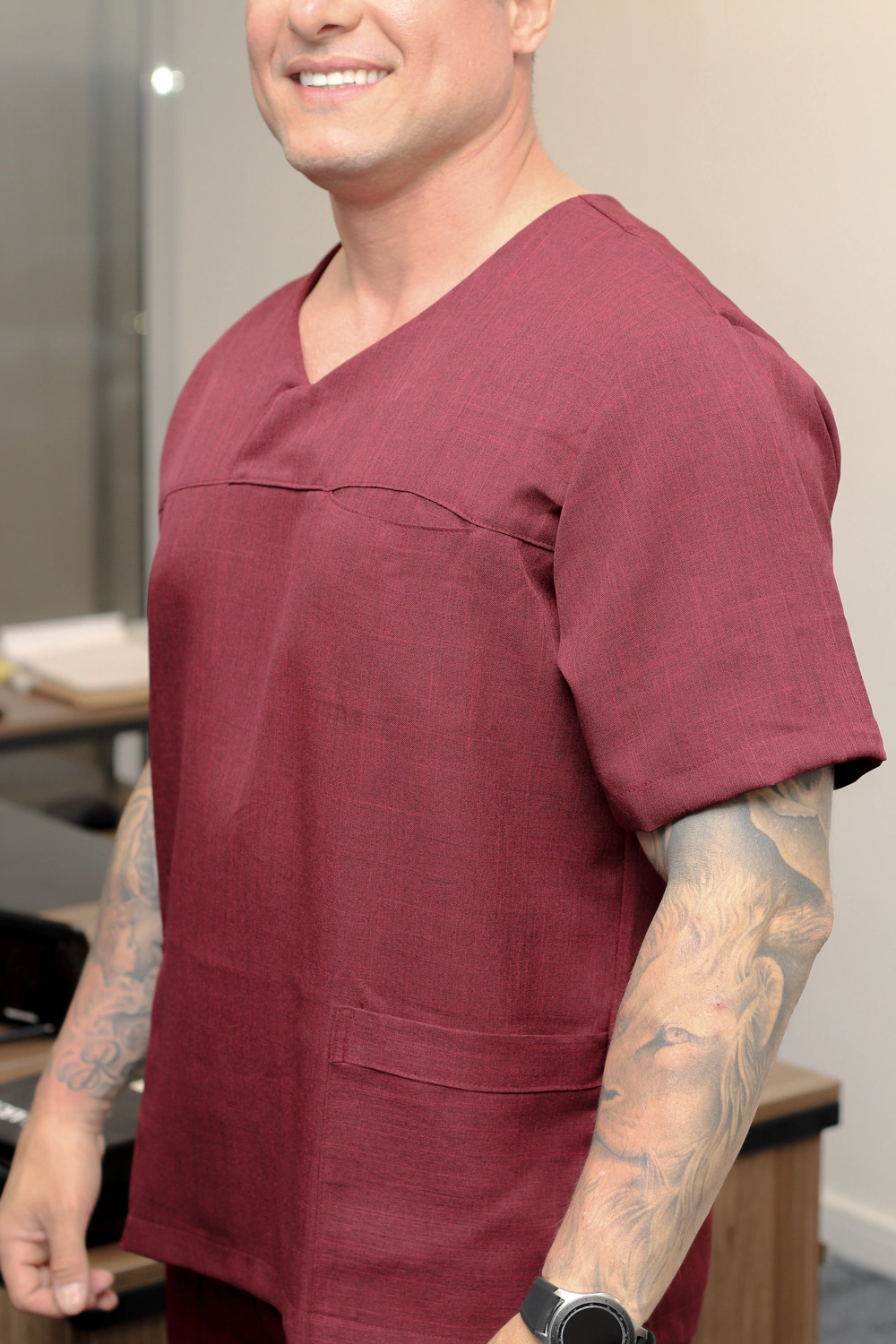 O Scrub Masculino George é feito com tecido alfaiataria melange , composição 100% poliéster , tecido de excelente qualidade fresco e sedoso. Apresenta uma modelagem confortável e elegante.